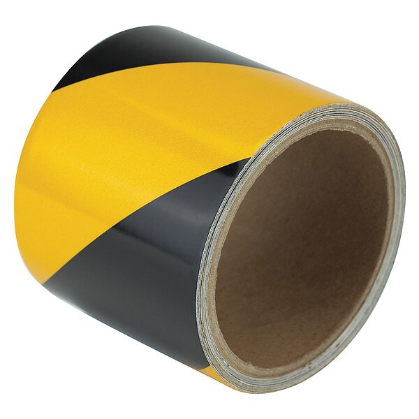 Floor Marking Tape, Continuous Roll, Striped, Black/Yellow, 3 in, 15 ft, 5.5 mil, Vinyl, Approved Vendor, Legend No Legend, Glow In The Dark No, Retroreflective Grade Engineer