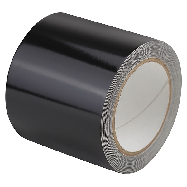 Floor Marking Tape, Continuous Roll, Solid, Black, 4 in, 50 ft, 5.5 mil, Vinyl, Approved Vendor, Legend No Legend, Glow In The Dark No, Retroreflective Grade Engineer
