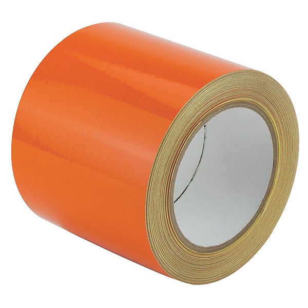 Floor Marking Tape, Continuous Roll, Solid, Orange, 4 in, 50 ft, 5.5 mil, Vinyl, Approved Vendor, Legend No Legend, Glow In The Dark No, Retroreflective Grade Engineer