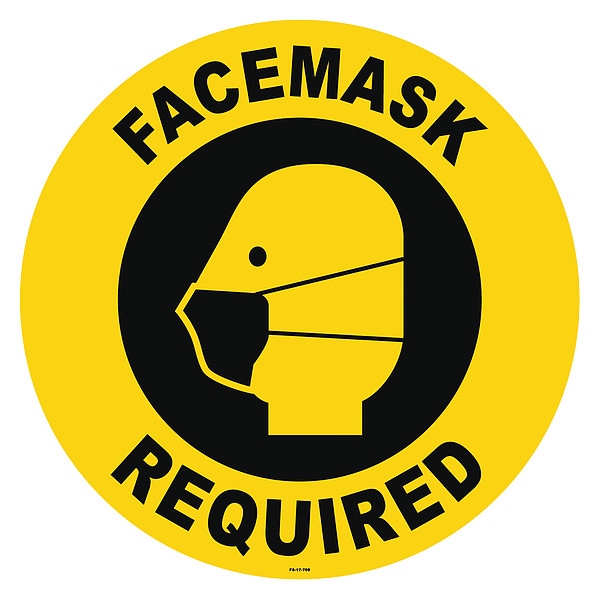 Floor Sign, Circle, English, Sign Format Other Format, Sign Legend Facemask Required, Sign Legend Background Color Yellow, Sign Legend Style Symbol and Text