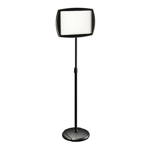 Floor Sign Holder, Mounting Style Freestanding, Size 15 in x 12 in, Overall Height 66 in, Material Plastic/Steel, Color Black, Includes Mounting Hardware, ADA Compliance No