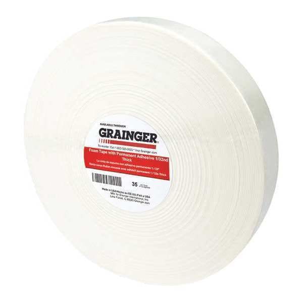 Imperial Tape Length 72 yd, Imperial Tape Width 1 in, Maximum Tape Performance Temperature 200 Degrees F, Minimum Tape Performance Temperature 0 Degrees F, Series TC242, Tape Adhesive Material Rubber, Tape Backing Material Polyethylene Foam, Standards ASTM D2979-01, PSTC-101, Tape Color White, Tape Tensile Strength Not Rated, Tape Thickness 31.25 mil, Foam Tape, Package Quantity 9