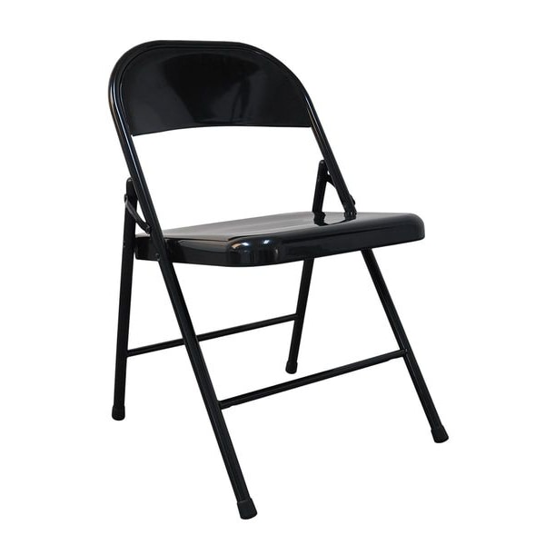 Folding Chair, Overall Height 29 1/4 in, Overall Width 18 1/8 in, Overall Depth 20 in, Seat Width 16 in, Seat Depth 16 in, Back Height 7 3/8 in, Back Width 16 1/4 in, Seat Color Black, Back Color Black, Frame Color Black, Seat Material Steel, Back Material Steel, Frame Material Steel, Cushion Thickness Not Padded, Arm Style Armless, Weight Capacity 300 lb