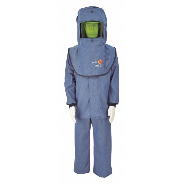 Flame-Resistant Coat/Overall Kit, Blue, Size 2XL, Fits Chest Size 50 In. to 52 In., Fits Waist Size 44 to 46 In., Inseam 30 In., Material Aramid Fiber, Hazard Risk Category (HRC) 2, Standards ASTM F1506, NFPA 70E, OSHA 1910.269, Includes Coat, Bib-Overall, Hood with Hard Cap