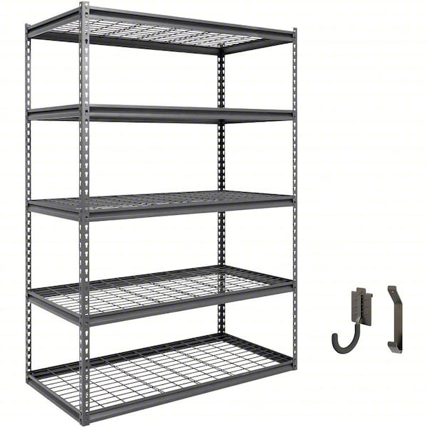 Metal Shelving, Dark Grey, Powder Coated, Frame Material Steel, Load Capacity per Shelf 800 lb, Whole Unit Load Capacity 4,000 lb, Maximum Post Load Capacity 2000 lb, Number of Shelves 5, Overall Depth 24 in, Overall Height 72 in, Overall Width 48 in, Post Construction Angle, Shelf Configuration Standalone, Shelf Style Ventilated, Shelving Material Steel, Assembled Unassembled, Shelving Gauge 6 ga, Post Gauge 18 ga, Shelf Adjustment Increments 1 1/2 in, Drawer Height Not Applicable