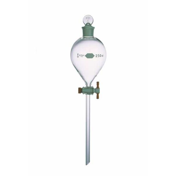 Funnel, Capacity - English 8.45 fl oz, Laboratory Funnel Type Separatory, Body Material Glass, Funnel Material Borosilicate Glass, Autoclavable No, USP Specification Type I, Product Type Separatory Funnel, For Use With Liquids, Stem Length - Metric 175 mm, Capacity - Metric 250 mL, Stem Outside Diameter - Metric 2 mm, Includes Closure Yes, Closure Material PTFE, ASTM Specification E1096, E438, Special Features Gradually Tapering Shoulders and a Wide Neck Facilitate Cleaning