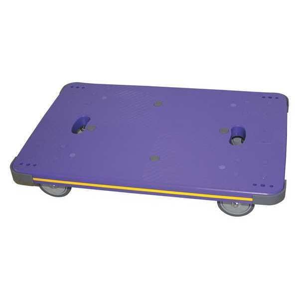 Solid-Deck Plastic General Purpose Dolly, Load Capacity 500 lb, Deck Length 35 3/8 in, Deck Width 23 1/4 in, Deck Height 8 in, Deck Material Plastic, Deck Surface Rubber Padded, Deck Style Solid, Color Blue, End Style Flush, Frame Material Plastic, Lip Type Flush, Securing Mechanism No Securing Mechanism, Deck Thickness 1 7/8 in