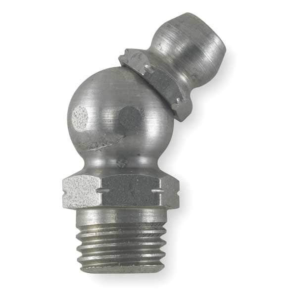 Grease Fitting, Grease Fitting Style Standard, Fitting Material Stainless Steel, Fitting Finish Unfinished, Fitting Head Angle 45.0 Degrees , Fitting Thread Size M8-1.00mm, Fitting Thread Type Metric, Overall Length 22.4mm, Max. Pressure 8000 psi, Meets/Exceeds SAE J-534-C and DIN 71412, Package Quantity 10