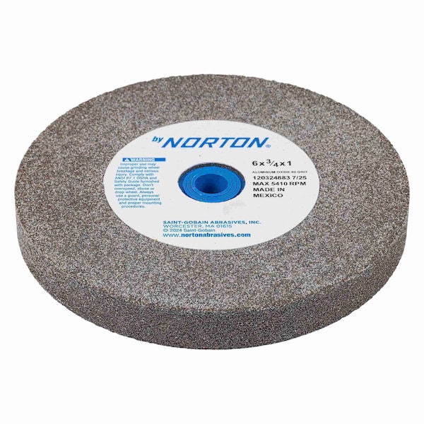 Aluminum Oxide, Connector Size 1 in, Connector Type Unthreaded Hole, Grit 60, Overall Diameter 6 in, Overall Thickness 3/4 in, Compatible Tool Type Bench Grinder, Primary Material Application Cast Iron, Stainless Steel, Steel, Tool Steel, Specification A60-VBE, Wheel Hardness V, Wheel Type Type 1, Maximum Operating Speed 5,410 RPM, Reducer Bushing Size 1/2 in, 5/8 in, 3/4 in, 7/8 in, Grade Medium, Bond Type Vitrified, Color Brown, Item Straight Grinding Wheel