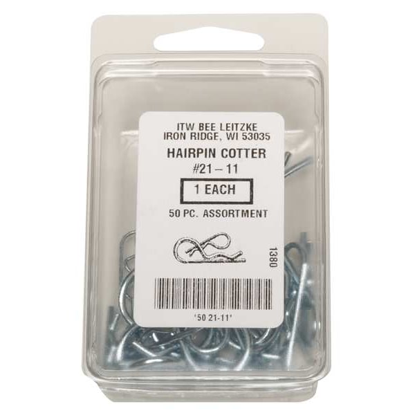 Hairpin Cotter Asst, Zinc, 50 Pcs, 5 Sizes
