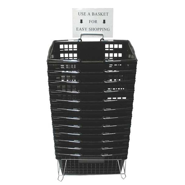 Hand Basket, Basket Material Plastic, Color Black, Overall Height 8 5/8 in, Overall Length 18 1/4 in, Overall Width 12 1/4 in, Handle Material Metal, Shape Rectangular, Package Quantity 12
