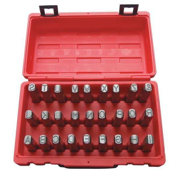 Hand Stamp Kit, Character Height Not Applicable, Character Type Set Letter Set, Characters Included A to Z, Ampersand (&), For Maximum Surface Hardness 62 HRC, For Shank Diameter Not Applicable, Holder Length Not Applicable, Holder Shank Size Not Applicable, Holder Width Not Applicable, Impression Character Style Not Applicable, Includes Holder Not Applicable, Letter Casing Uppercase, Maximum Characters per Line Not Applicable, Product Type Hand Stamp Kit