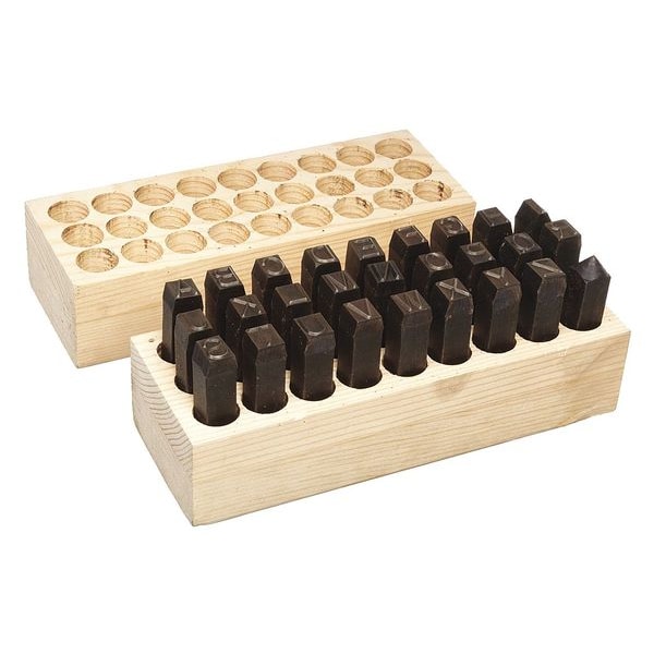 Hand Stamp Kit, Character Height 1/2 in, Character Type Set Letter Set, Characters Included A to Z, For Maximum Surface Hardness 50 HRC, For Shank Diameter 5/8 in, Holder Length Not Applicable, Holder Shank Size Not Applicable, Holder Width Not Applicable, Impression Character Style Sharp-Face, Letter Casing Uppercase, Product Type Hand Stamp Kit, Shank Length 3 3/8 in, Shank Thickness 5/8 in, Shank Width 5/8 in, Stamp Material Steel, Standards Not Applicable