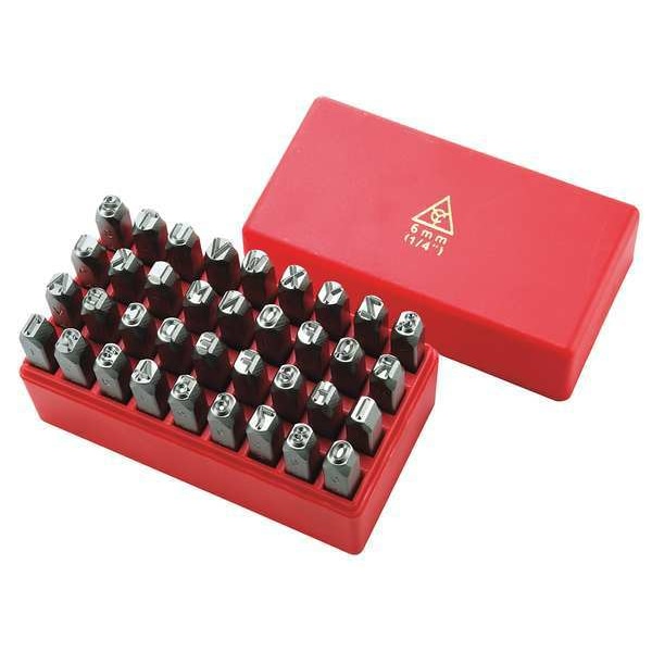 Hand Stamp Kit, Character Height 5/16 in, Character Type Set Letter/Number Set, Characters Included 0 to 8 (With 6 Serving as 9), A to Z, Ampersand (&), Duty Moderate, For Maximum Surface Hardness 62 HRC, For Shank Diameter 1/2 in, Holder Length Not Applicable, Holder Shank Size Not Applicable, Holder Width Not Applicable, Impression Character Style Standard, Includes Holder No, Letter Casing Uppercase, Maximum Characters per Line Not Applicable, Product Type Hand Stamp Kit