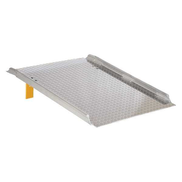 Hand Truck Dock Board, Aluminum, Load Capacity 800 lb, Overall Length 59 7/8 in, Overall Width 37 1/4 in, Usable Width 34 in, Service Height Range 10 in, Treadplate Deck, Thickness 3/16 in, Side Rail Height 6 in