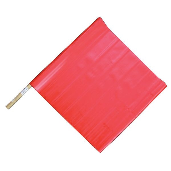 Handheld Warning Flag, Red, Vinyl, 18" Length, 24 in Wood Dowel