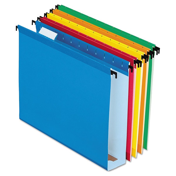 Hanging File Folders, Height 8 1/2 in, Width 11 in, Color Blue, Green, Orange, Red, Yellow, Includes Label Sheet, Tabs, Package Quantity 20