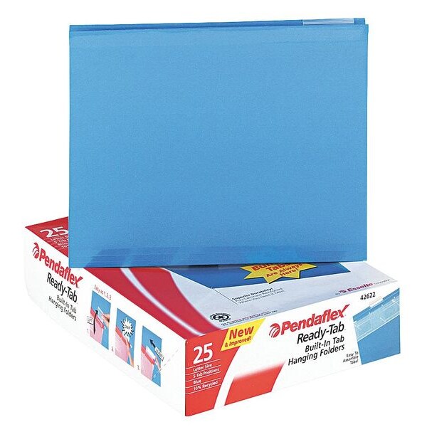 Hanging File Folders, Height 8 1/2 in, Width 11 in, Color Blue, Includes Inserts, Tabs, Package Quantity 25