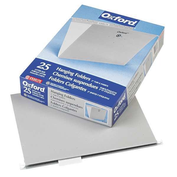 Hanging File Folders, Height 8 1/2 in, Width 11 in, Color Gray, Includes Label Sheet, Tabs, Package Quantity 25