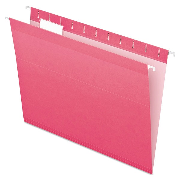 Hanging File Folders, Height 8 1/2 in, Width 11 in, Color Pink, Includes Label Sheet, Tabs, Package Quantity 25