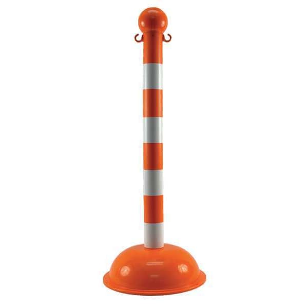Heavy Duty Stanchion, Post Top Sphere, For Use With 2 in HD and 3 in Plastic Chain, Compatible Line Chain, Overall Height 41 in, Post Diameter 3 in, Base Diameter 16 in, Fillable Yes, Post Material HDPE, Base Type Dome, Base Weight 2 lb, Post Color Orange, Base Color Safety Orange, Includes (4) Stripes, Product Type Stanchion, Indoor/Outdoor Usage Indoor, Outdoor, Post Finish Matte, Base Material Polyethylene, Base Finish Gloss, Color Safety Orange/White, Resistance Properties UV Resistant