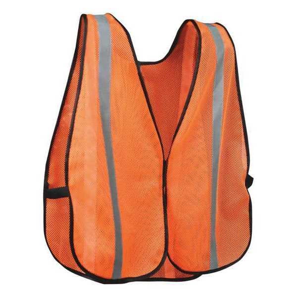 High Visibility Vest, ANSI Class Not Rated, Vest Size S, Traffic Safety Vest Color Orange/Red, Fits Chest Size 44 in to 54 in, Gender Unisex, Stripe Color Silver, Vest Material Polyester Mesh, Vest Closure Type Hook-and-Loop, ATPV Rating Not Rated, Vest Stripe Color Family Silver, Back Stripe Pattern Vertical, Vest Length 24-7/16 in, Number of Pockets (Inside) 0, Number of Pockets (Outside) 0, Number of Pockets with Closure 0, Features Polyester Mesh