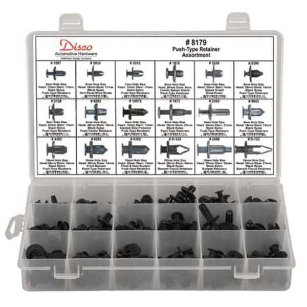Honda / Acura Retainer Assortment, Number of Pieces 164, Number of Sizes 18, Product Type Push-In Rivet Assortment, Material Grade/Class Ungraded, Manufacturer Location Globally Sourced, Made in North America No