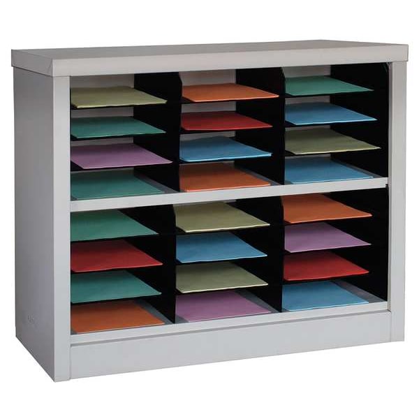 Literature Organizer, Product Type Mail and Literature Sorter, Number of Compartments 24, Includes Label Holders Yes, Overall Height 30 in, Overall Depth 13 in, Overall Width 34 1/2 in, Material Polypropylene, Steel, Color Tan, Literature Form Factor Letter, Compatible Manufacturer Part Number Not Applicable, Swivel No, Assembly Unassembled, Compartment Capacity 2 lb, Compatible Grainger Part Number Not Applicable, Weight Capacity 50 lb, Adjustable Shelves No, Compartment Depth 12 in