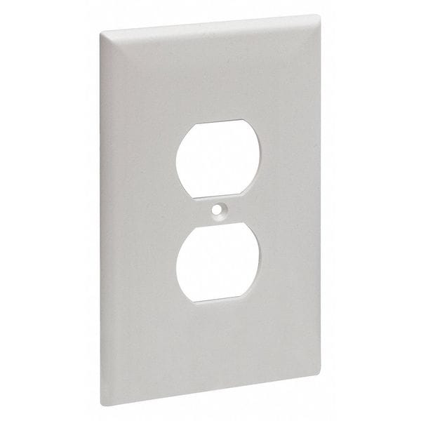 Duplex Receptacle Wall Plate, Color White, Material Plastic, Number of Gangs 1, Plate Size Jumbo, Finish Smooth, Standards UL Listed, Wall Plate Type Duplex Outlet, Features Captive Mounting Screws, For Use With Duplex Receptacle, Includes Mounting Hardware Yes