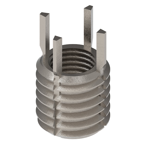Key Locking Insert, System of Measurement Inch, Insert Diameter 5/8 in, Overall Length 5/8 in, Internal Thread Size 7/16 In.-20, Internal Thread Fit 3B, External Thread Size 5/8 In.-11, External Thread Fit 2A, Thread Direction Right Hand, Thread Type Coarse, Material Stainless Steel, Finish Plain, Wall Type Heavy Wall, Number of Locking Keys 4, Compatible Material Metal, Compatible Tap Size 5/8 In.-11, Drill Bit Size 35/64 in, Minimum Installation Depth 11/32 in, Maximum Hole Diameter 0.583 in