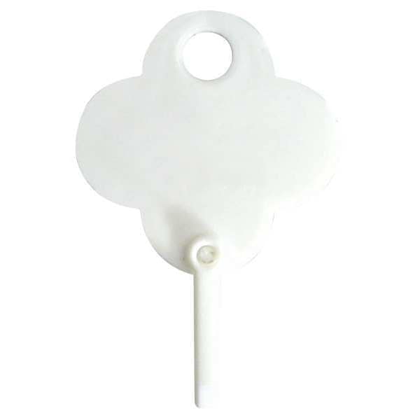 Blank Replacement Key Tag, Shamrock, Reusable, Height (In.) 1-1/4, Width (In.) 1-1/4, White, Integral Plastic Snap Hook, Package Quantity 100