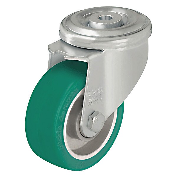 Bolt-Hole Caster, 1/2 in Bolt Hole Dia., 1/2 in Mounting Bolt Dia., Steel Caster Frame Material, Zinc Plated Frame Finish, 300 to 999 lb Load Rating Range, 770 lb Load Rating, 1 Number of Wheels, Ball, 6 in Mounting Height, 4 7/8 in Wheel Dia., 1 5/8 in Wheel Width, Polyurethane Wheel/Tread Material, 75 Shore A Wheel/Tread Hardness, Soft, Yes Non-Marking