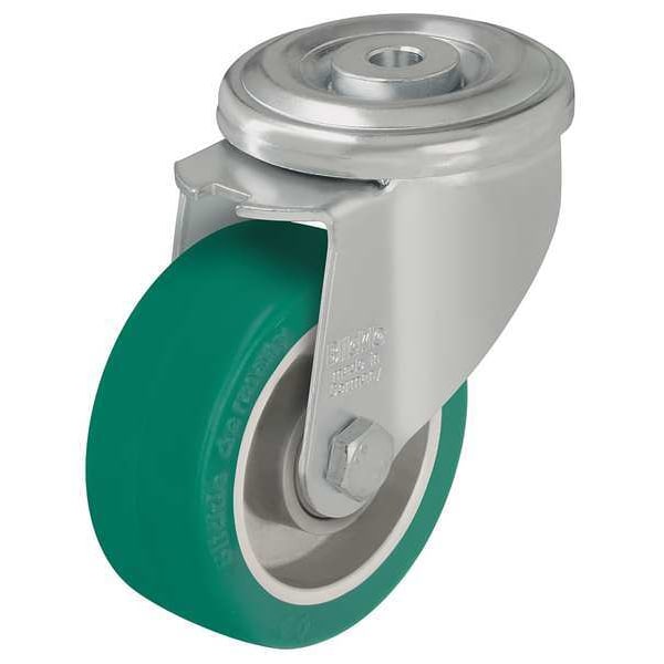 Bolt-Hole Caster, 1/2 in Bolt Hole Dia., 1/2 in Mounting Bolt Dia., Steel Caster Frame Material, Zinc Plated Frame Finish, 300 to 999 lb Load Rating Range, 660 lb Load Rating, 1 Number of Wheels, Ball, 5 in Mounting Height, 3 7/8 in Wheel Dia., 1 5/8 in Wheel Width, Polyurethane Wheel/Tread Material, 75 Shore A Wheel/Tread Hardness, Soft, Yes Non-Marking