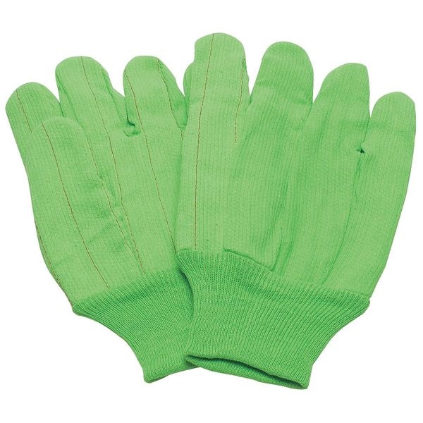 Knit Gloves, Cotton/Polyester, None Uncoated, Knit, High-Visibility Green, L, 1 PR