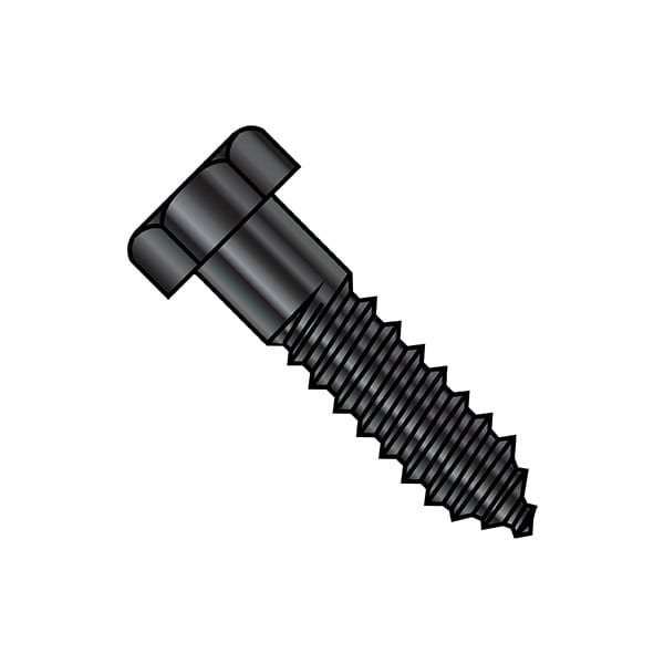 Lag Screw, 3/8 in, 4 in, Steel, Black Oxide Hex Hex Drive, 200 PK