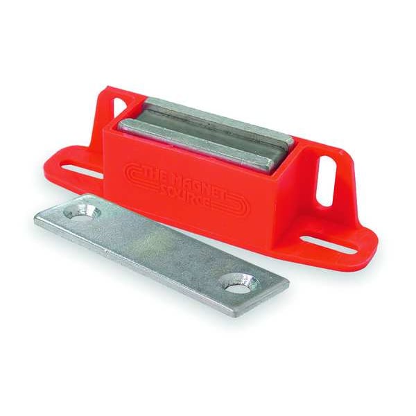 Door Latch, Magnetic, Pull, Adjustable Yes, Non-locking, Catch/Latch Material Ceramic/Plastic/Steel, Catch/Latch Finish Red Plastic, Catch/Latch Height 1 in, Catch/Latch Width 4 3/16 in, Catch/Latch Depth 1 1/8 in, Pull Force 50 lb, Hole Prep Center Lines 2 3/8 in, Includes Latch Plate, Mounting Hole Dia. 1-9/16 in, Panel Through Hole/Screw Size 5/16 in