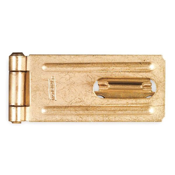 Hasp, Hasp Staple Type Fixed, Hasp Style Conventional, Hasp Material Steel, Hasp Finish Brass, Hasp Length 3 1/4 in, Hasp Width 1 1/2 in, Hasp Height 3 9/32 in, Max. Shackle Dia. 7/16 in