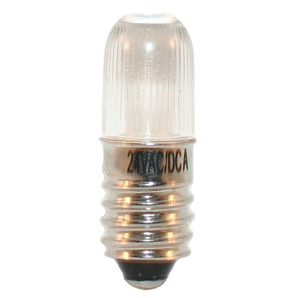 LED Lamp, Bulb Shape T3-1/4, Dimmable No, Glass Bulb Housing, Bulb Base Type Miniature Screw (E10), 0.4 Watts, Bulb Color Temp. 3000K, LED, Light Appearance 3000 to 3999K, Amber Light, Average Bulb Life 20,000 hr., Bulb Type Miniature, Lumens 4, Voltage 24, Max. Overall Bulb Length 1-13/64 In., Light Bulb Dia. 7/16 In.