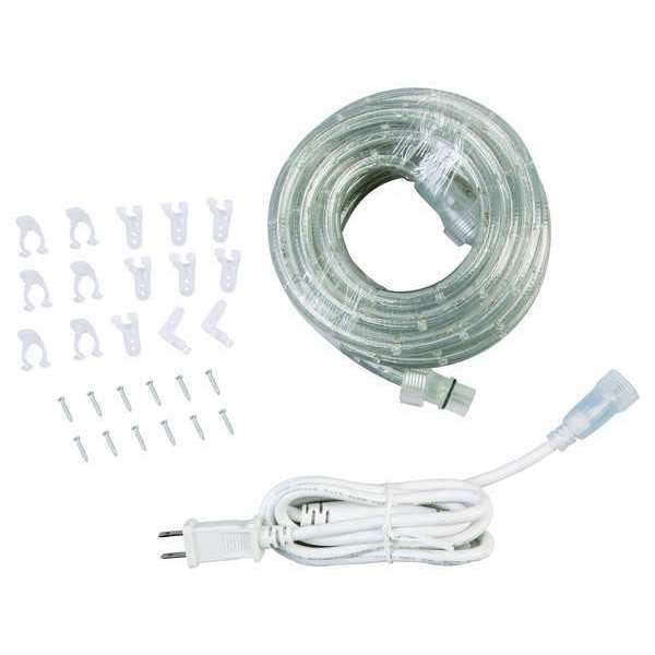 LED Rope Light, Casing Color Clear, Light Color White, Overall Length 18 ft, Overall Height 1/2 in, Wattage 13 W, Voltage 120 V AC, Rated Life 30,000 hr, Dimmable No, Includes (18) Screws, (9) Mounting Clips, Power Cord, Spare Fuse, Bulb Spacing 1 in, Casing Material PVC, Chasing No, Color Rendering Index 70, Color Temperature 5000K, Connection Type Plug-In, Environmental Rating Wet Location Rated, Light Output Not Applicable, Manufacturer Warranty Length 1 yr