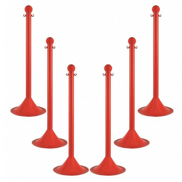 Light Duty Stanchion, Post Top Sphere, For Use With 1.5 in and 2 in Plastic Chain, Compatible Line Chain, Overall Height 47 1/2 in, Post Diameter 2 in, Base Diameter 14 in, Fillable Yes, Post Material HDPE, Base Type Sloped, Base Weight 0.4 lb, Post Color Red, Base Color Red, Includes (6) Light Duty Stanchions, Product Type Stanchion, Indoor/Outdoor Usage Indoor, Outdoor, Post Finish Matte, Base Material HDPE, Color Red, Resistance Properties UV Resistant, Manufacturer Warranty Length 5 yr