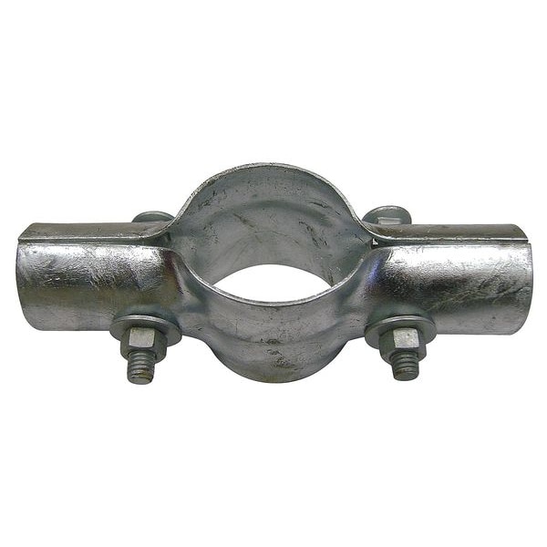 Line Rail Clamp, Product Type Line Rail Clamp, Material Steel, Compatible Diameter 1 5/8 in (Rail) diameter; 2 3/8 in (Post) diameter, Gauge 9 ga, Includes (2) Sets of Nuts and Bolts, Finish Galvanized