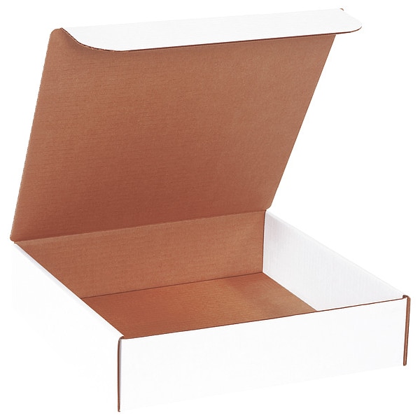 Literature Mailer, Wall Type Single Wall, Inside Length 12 in, Inside Width 12 in, Inside Height 3 in, 12x12x3 in Inside LxWxH, ECT-32-B, Outside Length 12 in, Outside Width 12 in, Outside Height 3 in, 12-3/4x12-1/2x3-1/4 in Outside LxWxH, Wall Thickness 3/16 in, Fluting Profile B Flute, Maximum Load Capacity 65 lb, Material Corrugated Cardboard, Color White, Post-Consumer Recyclability 100 Percent, Standards Not Applicable
