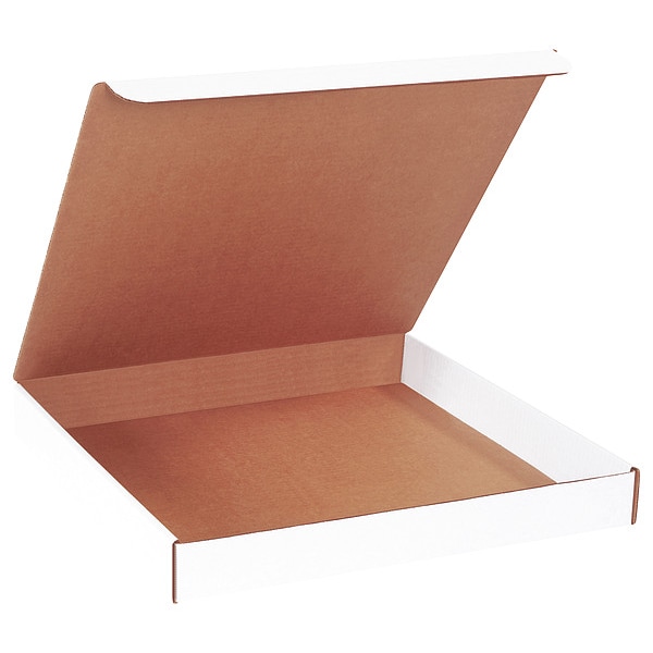 Literature Mailer, Wall Type Single Wall, Inside Length 16 in, Inside Width 16 in, Inside Height 2 in, 16x16x2 in Inside LxWxH, ECT-32-B, Outside Length 16 in, Outside Width 16 in, Outside Height 2 in, 16-3/4x16-1/2x2-1/4 in Outside LxWxH, Wall Thickness 3/16 in, Fluting Profile B Flute, Maximum Load Capacity 65 lb, Material Corrugated Cardboard, Color White, Post-Consumer Recyclability 100 Percent, Standards Not Applicable
