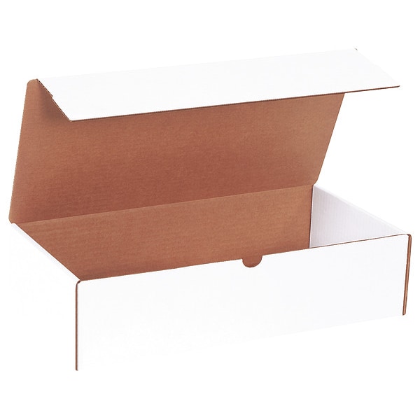 Literature Mailer, Wall Type Single Wall, Inside Length 16 in, Inside Width 8 in, Inside Height 4 in, 16x8x4 in Inside LxWxH, ECT-32-B, Outside Length 16 in, Outside Width 8 in, Outside Height 4 in, 16-3/4x8-1/2x4-1/4 in Outside LxWxH, Wall Thickness 3/16 in, Fluting Profile B Flute, Maximum Load Capacity 65 lb, Material Corrugated Cardboard, Color White, Post-Consumer Recyclability 100 Percent, Standards Not Applicable