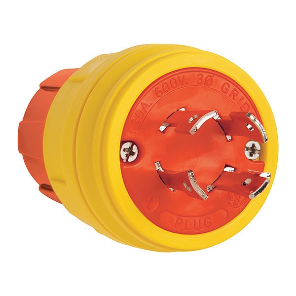 Locking Plug, L17-30P, 30 A, 600V AC, Single Phase, 3 Pole, Screw Terminals, Yellow
