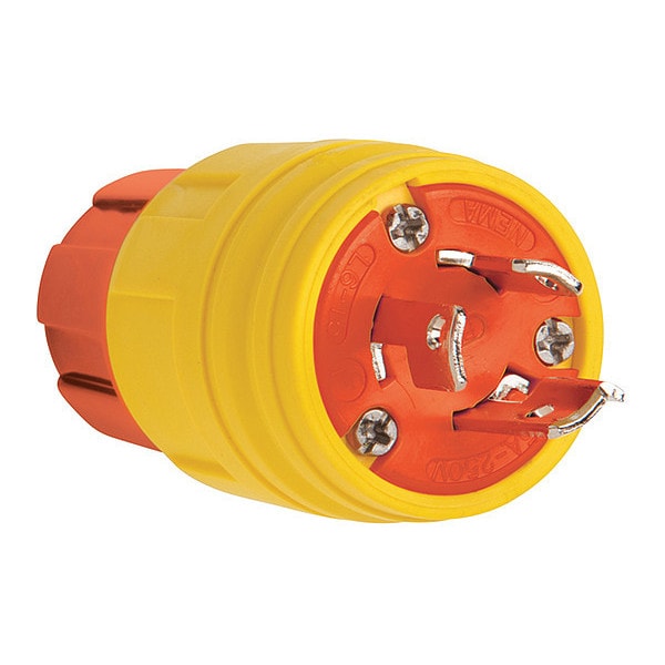 Locking Plug, L6-15P, 15 A, 250V AC, Single Phase, 2 Pole, Screw Terminals, Yellow