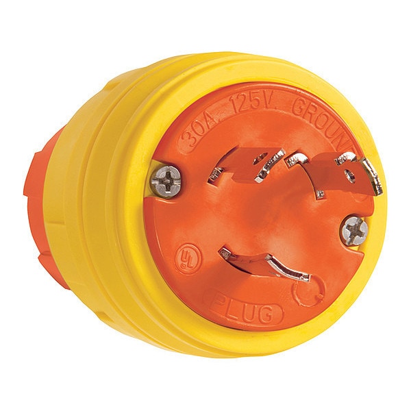 Locking Receptacle, 30 A, 125V AC, Single Phase, 2 Pole, Screw Terminals, Yellow