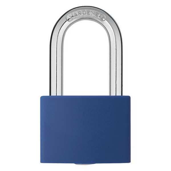 Lockout Padlock, Body Color Blue, Body Height 2 in, Body Material Aluminum, Body Thickness 11/16 in, Body Width 1 5/16 in, Header None/No Header, Key Type Keyed Different, Shackle Diameter 1/4 in, Shackle Height 1 7/16 in, Shackle Material Hardened Steel, Shackle Type Open, Width Across Shackle 7/8 in, Legend Danger Locked Out