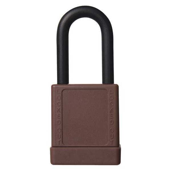 Lockout Padlock, Body Color Brown, Body Height 2 in, Body Material Aluminum, Body Thickness 13/16 in, Body Width 1 9/16 in, Header None/No Header, Key Type Keyed Different, Shackle Diameter 1/4 in, Shackle Height 1 1/2 in, Shackle Material Hardened Steel, Shackle Type Open, Width Across Shackle 3/4 in, Includes English Lockout Labels, French Lockout Labels, Spanish Lockout Labels, Labeling Label Included, Language English, French, Spanish, Legend Danger Locked Out, Package Quantity 6