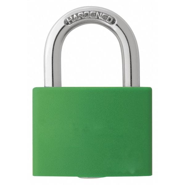 Lockout Padlock, Keyed Different, Aluminum, Green, 1 in Shackle Height, 1 5/16 in Body Width